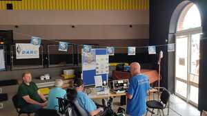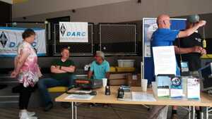 Nachdem am Samstag zuvor bereits Vorbereitung für den Antennenaufbau geleistet wurden, war der restliche Aufbau unseres Standes am Sonntagmorgen zügig fertig gestellt